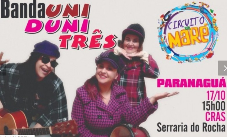 A Prefeitura de Paranaguá, através da Secretaria Municipal de Cultura e Turismo, (Secultur), convida a população para a apresentação do espetáculo musical Uni Duni Três, nesta quinta-feira, 17, a partir das 15h, no Centro de Referência de Assistência Social, (CRAS) do bairro Serraria do Rocha. A entrada é franca.