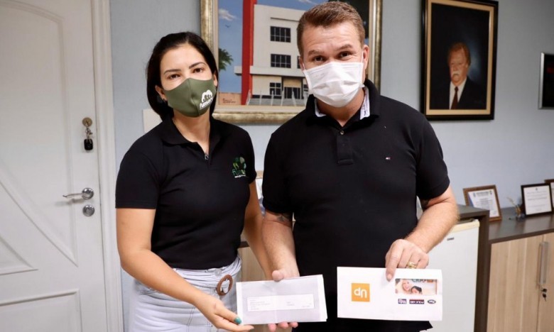 A presidente do Conselho Diretor da Funserv , Patrícia Rosina Marcelino, esteve com o prefeito Marcelo Roque nesta semana para entregar um cartão presente UP, que foi a maneira segura encontrada para substituir o peru que era entregue nesta época do ano.