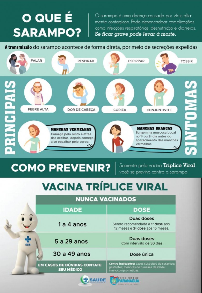 O surto de sarampo em São Paulo e o primeiro registro da doença em terras paranaenses, mesmo que importado, acendeu alerta vermelho nas autoridades sanitárias do Estado. Em Paranaguá, a preocupação aumentou também, pela proximidade com a área que está tendo registro de vários casos da doença. Por este motivo a Secretaria Municipal de Saúde inicia nesta semana uma série de medidas para aumentar a divulgação de mais informações à população local.