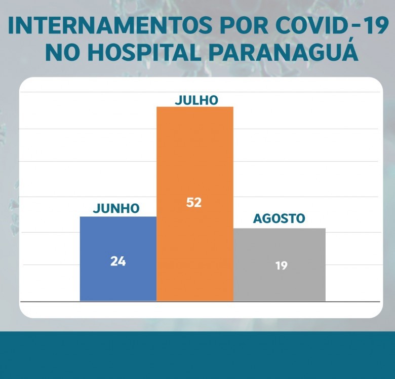 Na rede privada de saúde, a diferença também foi significativa. Conforme o Hospital Paranaguá, em junho, foram 24 internações, em julho, pico da pandemia, foram registrados 52 internamentos. A queda foi relevante em agosto quando apresentou 19 internações. Um percentual de redução de 63%.