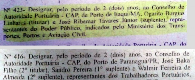 Da mesma forma, o ex-vereador e presidente da Câmara Municial de Paranaguá, Ogarito Linhares foi designado para o Conselho do porto de Itaqui do estado do Maranhão.