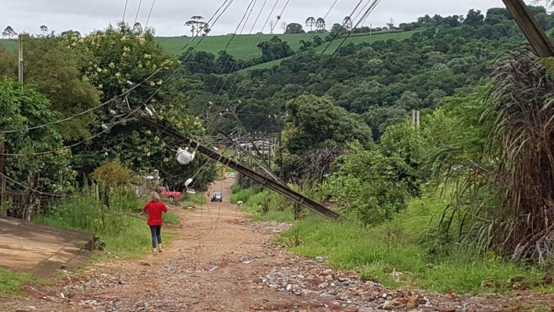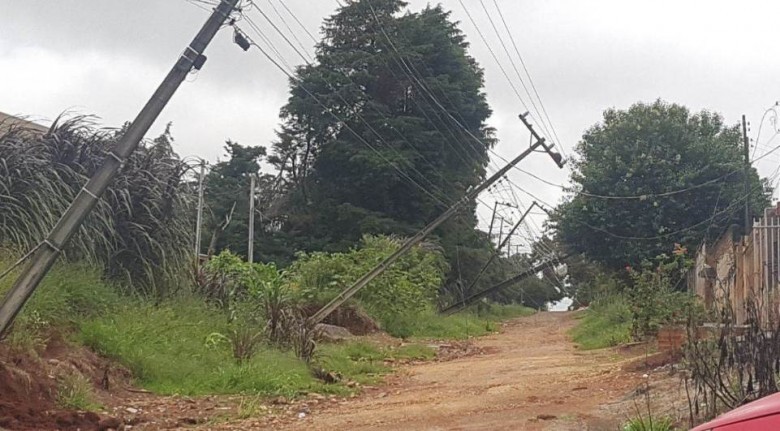 Seis postes da rede elétrica caíram na manhã desta quarta-feira (17), na Rua Cirema Becker, no bairro Shangrila, em Ponta Grossa.