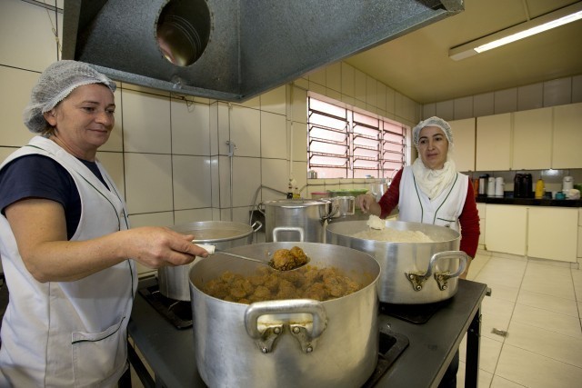 No Colégio Estadual Leôncio Correia, em Curitiba, o preparo da merenda escolar começa com uma visita rápida à despensa. Ali, a merendeira Rosemari Provin Dias, e suas colegas, elaboram os pratos que serão servidos aos 2.400 alunos do ensino fundamental, médio e técnico.