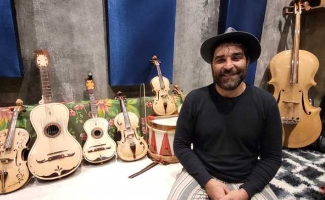 Aorelio Domingues, artesão de instrumentos musicais, no Estúdio Papagaio Loro Records
