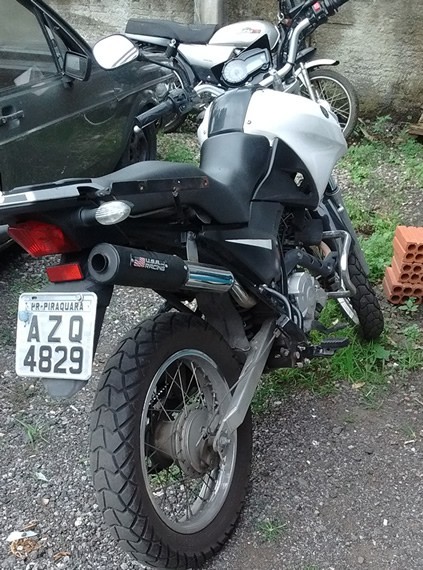 Durante esse tempo, a Polícia Militar (PM) encontrou essa mesma moto abandonada em um posto de gasolina na entrada da cidade e informou a Polícia Civil, que após apurações, constataram que a moto foi roubada em Curitiba no dia 30/03/2017 e estava com a placa clonada.