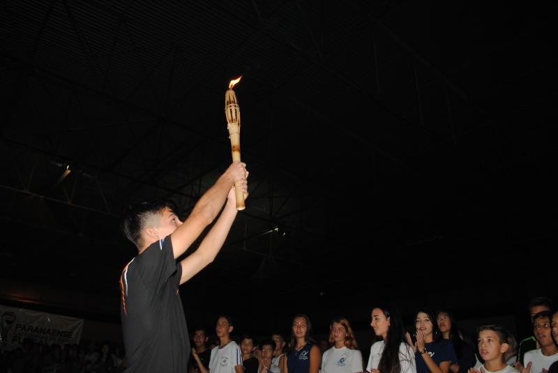 As delegações compostas por estudantes e educadores entraram na quadra com suas bandeiras e uniformes aplaudindo e animando a solenidade. O estudante do Colégio Nova Geração, Pedro Farias da Silva, atleta do futsal carregou o fogo simbólico por toda a extensão do Albertina Salmon até o acendimento da pira olímpica. Já a aluna Adrielly Xavier Godói, estudante do Colégio Estadual Alberto Gomes Veiga fez, junto aos demais estudantes, o Juramento do Atleta. A aluna foi aplaudida pelos centenas de estudantes presentes.