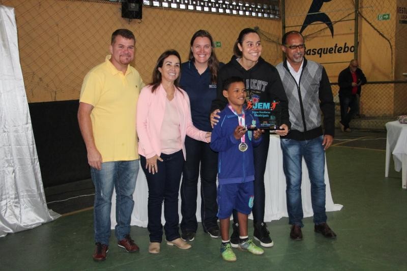 O encerramento de mais uma edição dos Jogos Escolares Municipais (JEM's) reuniu alunos e professores no Ginásio de Esportes Joaquim Tramujas, nesta segunda-feira, 09. O prefeito Marcelo Roque prestigiou a solenidade de encerramento junto a equipe da Secretaria Municipal de Educação (Semedi).