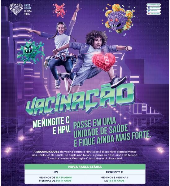 Devem receber a dose contra o HPV meninas de 9 a 14 anos e meninos de 11 a 14 anos. Já a faixa etária de imunização contra a meningite C foi ampliada e passa a ser de 11 a 14 anos. Até o ano passado, eram imunizados apenas meninos e meninas de 12 e 13 anos.