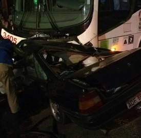 Um motorista de 23 anos morreu após se envolver em um acidente com um ônibus na esquina das Ruas Wilson Dacheaux Pereira com Pastor Antonio Pólito, no bairro Boqueirão, em Curitiba, no início da madrugada desta quinta-feira (13). Ele estava em um veículo Monza que foi atingido na lateral esquerda por um ônibus de turismo.