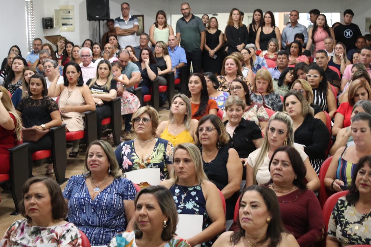 A Prefeitura de Paranaguá empossou nesta quinta-feira, 5, os gestores eleitos que passam a ocupar os cargos de direção nas instituições da Rede Municipal de Ensino. Após a consulta pública realizada pela Secretaria de Educação (Semedi) os 54 gestores receberam a ordem de serviço, termo de compromisso e certificado durante a solenidade de posse.