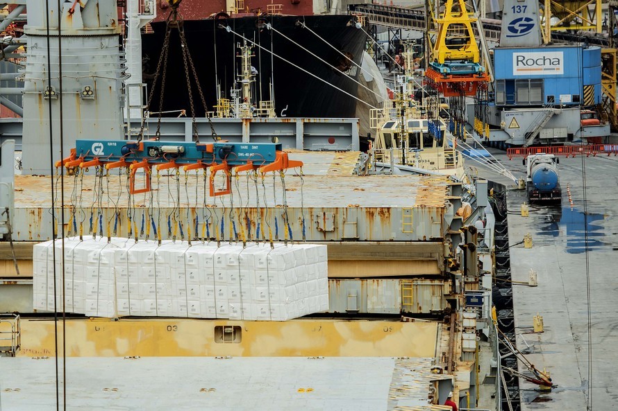 Uma carga de 46 mil toneladas de celulose, da Klabin, está sendo embarcada no Porto de Paranaguá. O embarque começou quinta-feira (14) e segue domingo (17). Desde o início das operações do produto no terminal paranaense, este é o maior lote já exportado.