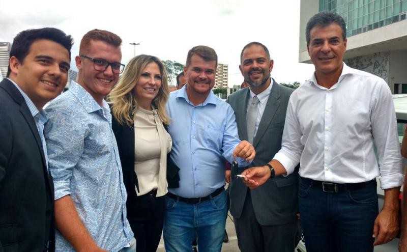 O governador Beto Richa entregou nesta segunda-feira (5), no Palácio Iguaçu, em Curitiba, 100 novos veículos aos Escritórios Regionais e às Agências do Trabalhador da Secretaria de Estado da Justiça, Trabalho e Direitos Humanos. Um destes veículos foi entregue ao prefeito de Paranaguá, Marcelo e ao secretário do Trabalho, Brayan Roque.