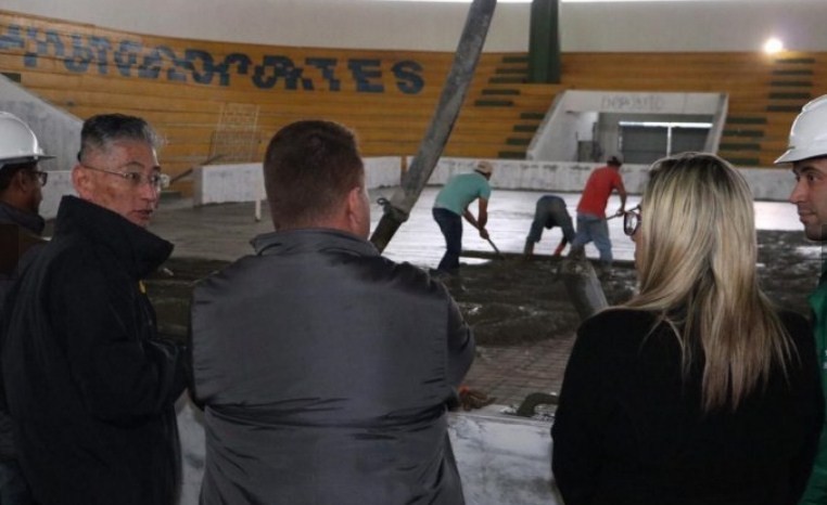 Na tarde desta terça-feira, 20, o prefeito Marcelo Roque esteve acompanhando o desenvolvimento das obras de readequação e reforma do Ginásio de Esportes Albertina Salmon.