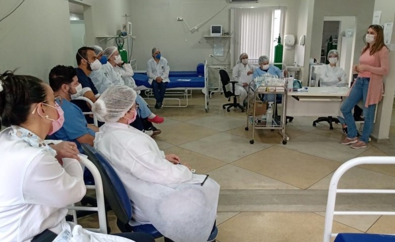 Os profissionais que atuam no Hospital de Campanha em Paranaguá estão participando do 1.º Treinamento de Educação Continuada. O primeiro tema abordado foi o “Sistema Respiratório e Oxigenoterapia”. A capacitação é voltada para a equipe multiprofissional.