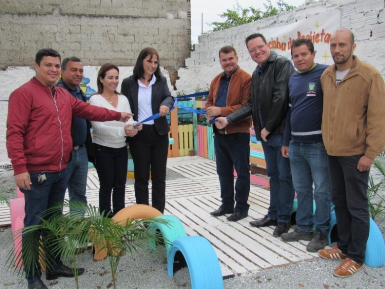 “Quintal Feliz” é assim que a Praça de Bolso Anchieta está sendo carinhosamente chamada, na Escola Municipal José de Anchieta. A entrega do espaço aconteceu na manhã desta segunda-feira, 13, na instituição de ensino, na Vila Guarani. “É um momento de gratidão, um sonho que se realizou. É um espaço aconchegante para as crianças. A pracinha fará parte do projeto Ecoviver que temos na escola, além do projeto de leitura já que os professores pretender trazer as crianças para o espaço também nos momentos de ler um bom livro”, conta a diretora da Escola José de Anchieta, Marilze Cristine de Freitas. A Praça de Bolso é uma parceria entre as secretarias municipais de Educação e Meio Ambiente.
