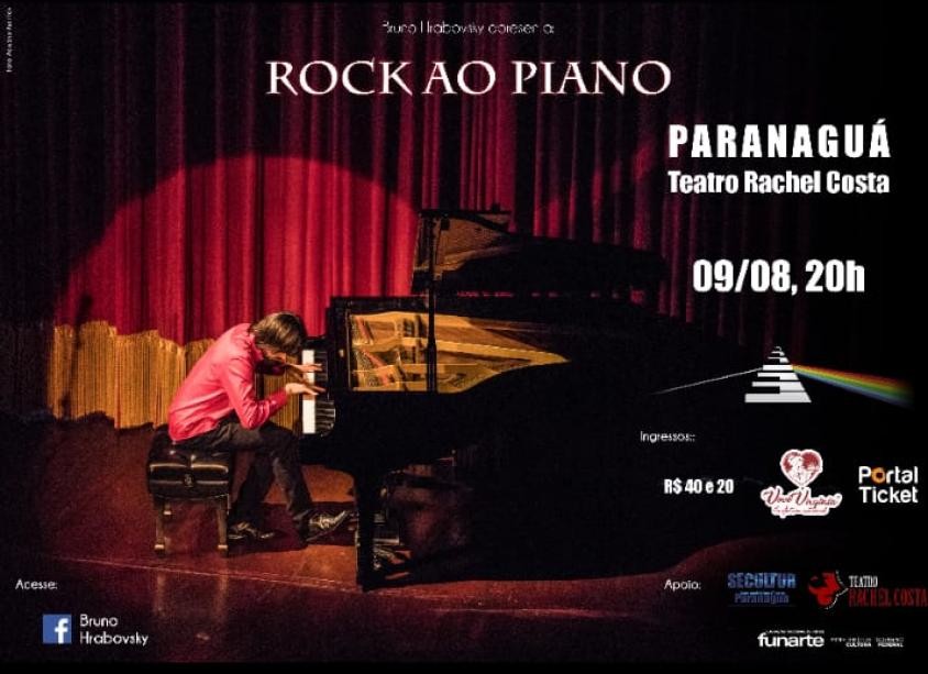Nesta sexta-feira, 9, o Teatro Municipal Rachel Costa, às 20h, conta com uma apresentação diferenciada: Rock no Piano com o artista Bruno Hrabovsky. Depois de passar por 80 cidades brasileiras, o artista toca pela primeira vez em Paranaguá trazendo uma releitura do Rock usando o piano como único instrumento musical.