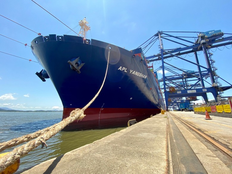 Nesta quinta-feira (10), a TCP recebeu o porta-contêineres APL Yangshan, do armador francês CMA CGM, que é o maior navio de ponta a ponta da história do terminal. Com 347m de ponta a ponta e 45m de largura, ele pesa mais de 128 mil toneladas e possui capacidade de até 10.800 TEUs (medida para contêiner de 20 pés de comprimento).