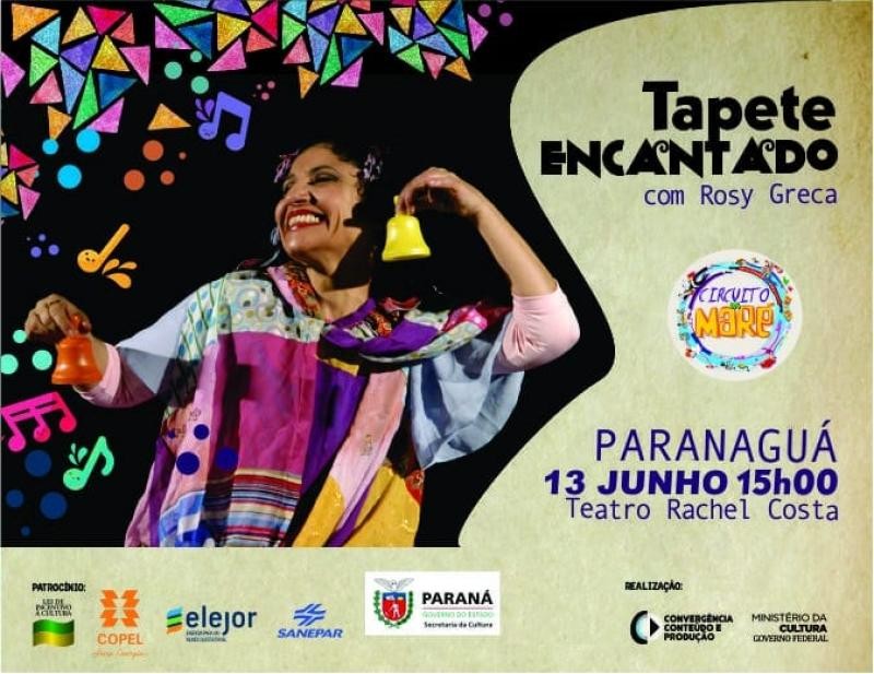 No dia 13 junho o Teatro Rachel Costa recebe o espetáculo “Tapete Encantado” com Rosy Greca. A iniciativa é da Prefeitura de Paranaguá por meio da Secretaria Municipal de Cultura e Turismo em parceria com a Secretaria Municipal de Educação.