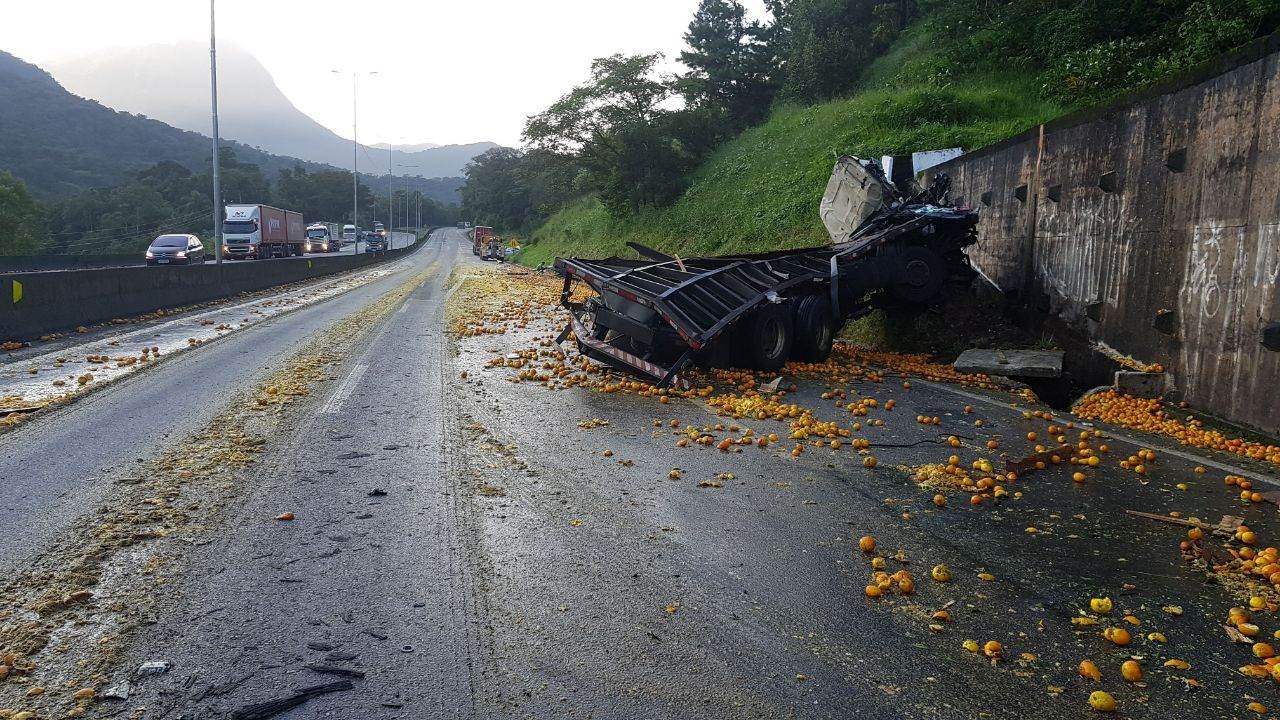A pista sentido Litoral foi interditada por conta do acidente e parte da pista de rolamento, sentido sul, também chegou a ficar bloqueada, já que houve derramamento da carga de laranjas. A pista sentido a Curitiba já está liberada.