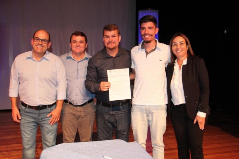 Foram empossados nesta quarta-feira, 09, 216 profissionais aprovados no último concurso público promovido para o preenchimento de vagas na Rede Municipal de Ensino. São oportunidades destinadas a professores de educação física, ensino fundamental e educação infantil. A solenidade foi realizada no Teatro Rachel Costa com a presença do prefeito Marcelo Roque e da secretária de Educação, Vandecy Dutra.
