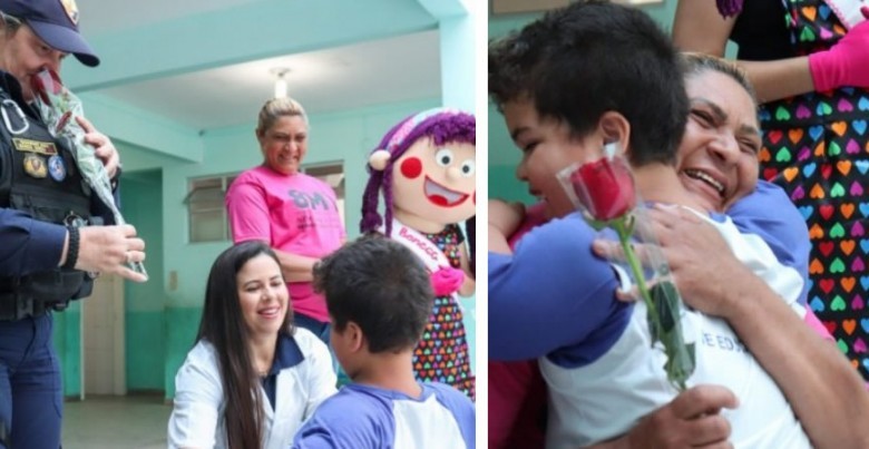 Nesta semana, a pedagoga da Escola Municipal Nascimento Júnior, Flávia Lima, convidou algumas mães de alunos, duas guardas municipais e uma profissional da área de saúde para falar sobre o projeto e também para participar de uma apresentação feita só por meninos destacando a importância da mulher na sociedade.