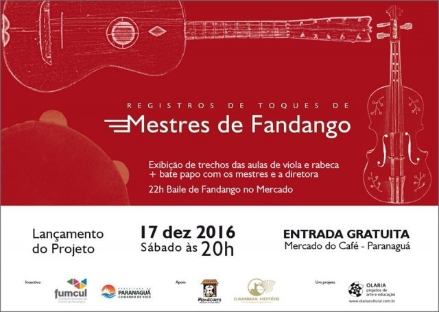 Durante o lançamento, serão exibidos trechos das aulas de viola e rabeca. Em seguida, acontece bate-papo com os mestres e a diretora Lia Marchi. Logo depois, às 22h, haverá Baile de Fandango, também no Mercado.