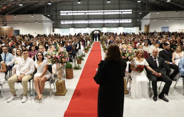 Cerca de 170 casais celebraram o matrimônio em casamento coletivo realizado pelo programa Justiça no Bairro, por meio do Tribunal de Justiça do Paraná (TJPR) e SESC Paranaguá. Ao som da marcha nupcial, casais selaram o momento em cerimônia realizada no Complexo Turístico Mega Rocio neste sábado, 6.