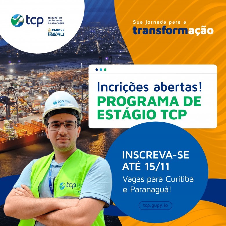 Os universitários têm até o dia 15 de novembro para se inscreverem no Programa de Estágio TCP 2022. Este ano, os estagiários terão contato com as áreas de comercial, financeiro, manutenção, operações, recursos humanos, saúde e segurança do trabalho. As vagas são para Curitiba e Paranaguá.