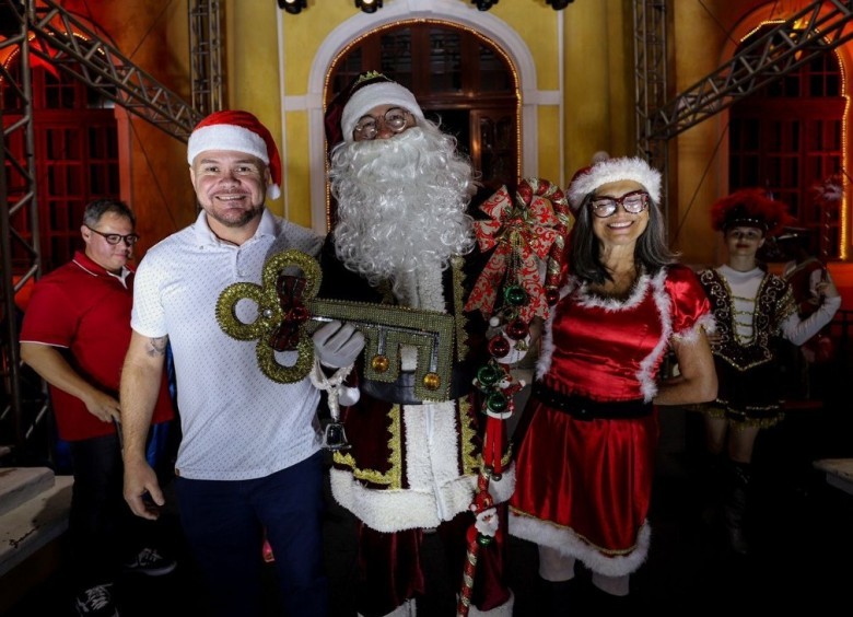 O Papai Noel chegou em grande estilo na Estação Ferroviária, embarcado no Tarifa Zero, e recebeu a chave da cidade do prefeito Marcelo Roque.