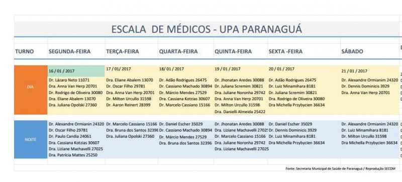 A Prefeitura de Paranaguá divulgou, neste domingo (15), a escala de plantões médicos da UPA - Unidade de Pronto Atendimento de Paranaguá na próxima semana.