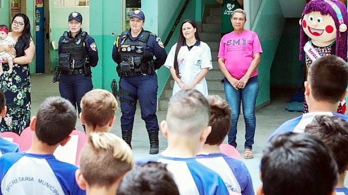 Nesta semana, a pedagoga da Escola Municipal Nascimento Júnior, Flávia Lima, convidou algumas mães de alunos, duas guardas municipais e uma profissional da área de saúde para falar sobre o projeto e também para participar de uma apresentação feita só por meninos destacando a importância da mulher na sociedade.