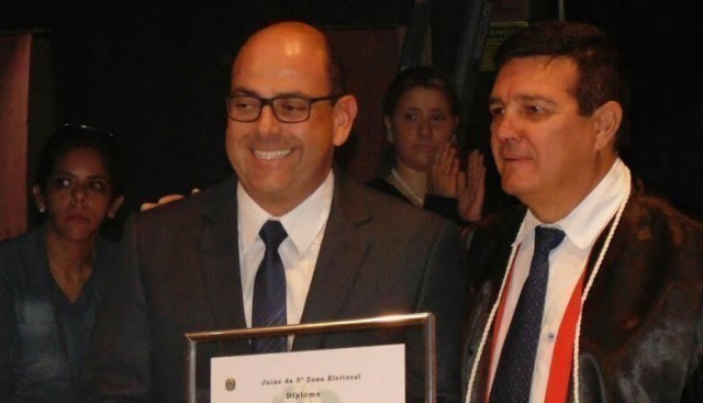 O prefeito eleito Marcelo Roque e o seu vice Arnaldo Maranhão, juntamente com 19 vereadores foram diplomados na noite de ontem (02/12) no Teatro Raquel Costa.