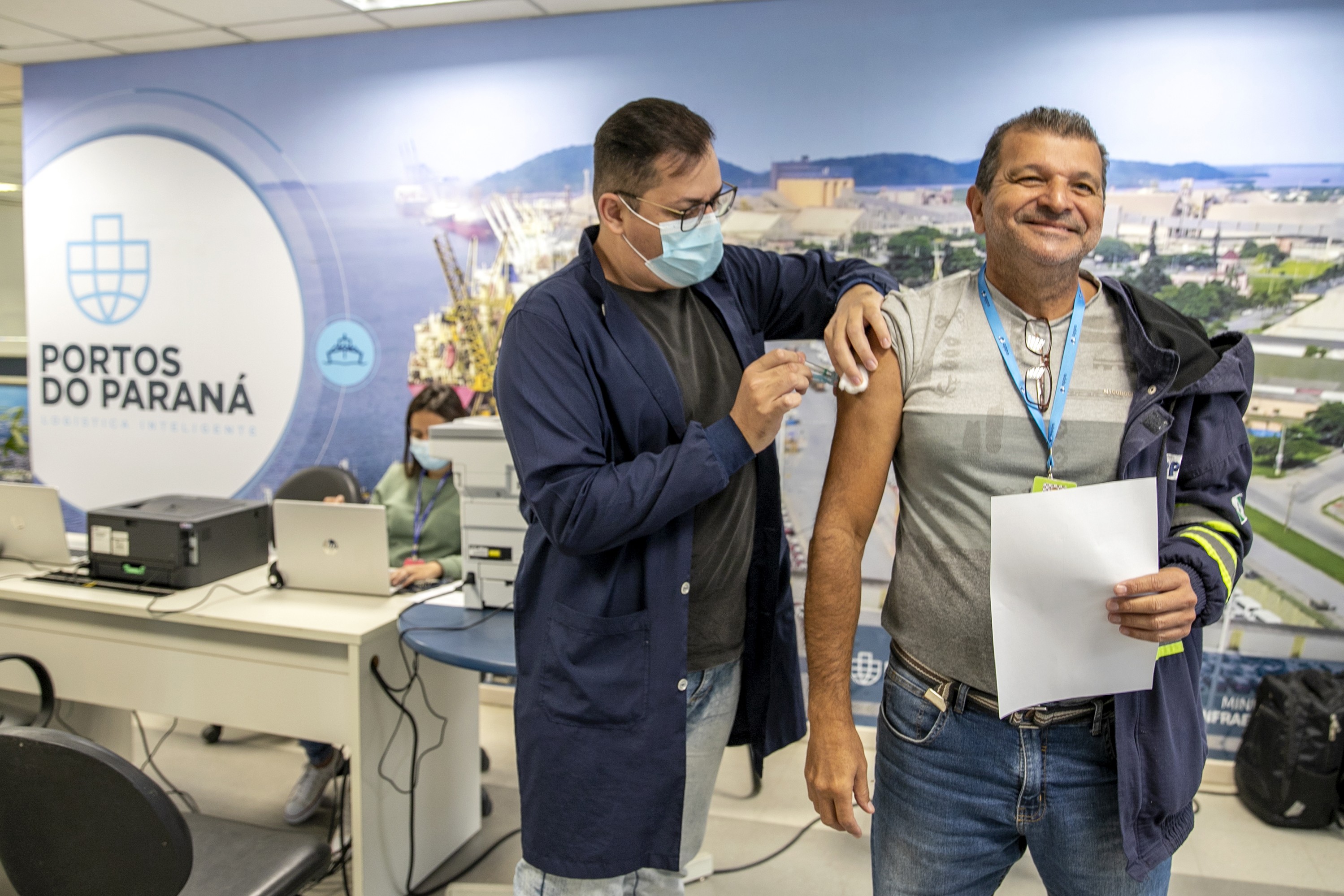 A Portos do Paraná encerra nesta quinta-feira (19) o esforço concentrado para promover a vacinação de trabalhadores contra a gripe Influenza e também contra a Covid-19. A ação, em parceria com a Secretaria da Saúde de Paranaguá, vai atender os empregados da empresa pública e, também, trabalhadores que atuam nas demais empresas da comunidade portuária e prestadores de serviços que passam pelo local.