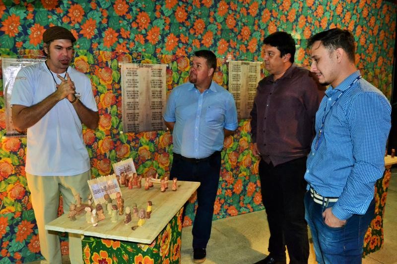 O prefeito Marcelo Roque participou da abertura do projeto Sesc Regionalidades, com a exposição Memorial do Folclore Caiçara, do artista Denni Capetta, na noite de segunda-feira (10). São peças esculpidas em madeira reutilizada de palete (usado para o transporte de cargas), todas abordando o cotidiano local, com temáticas como folguedos, crendices, lendas, crenças e a relação com a natureza e o ambiente onde vive o folclórico tradicional e urbano.