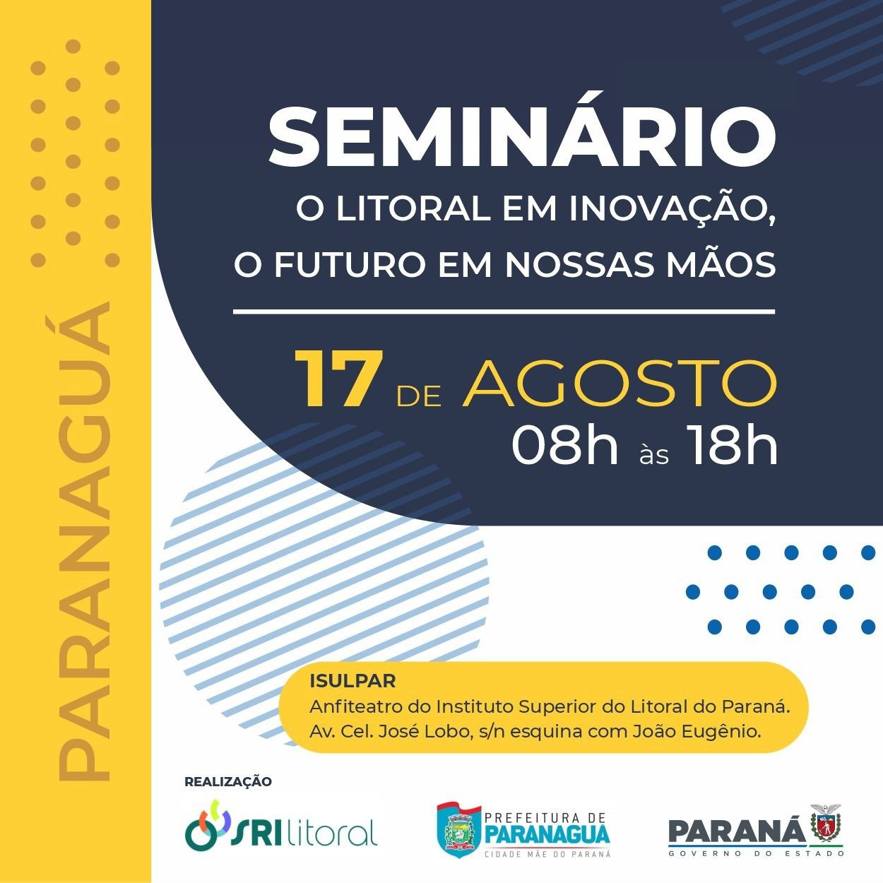 O SRI Litoral - Sistema Regional de Inovação do Litoral, juntamente com a Prefeitura Municipal de Paranaguá e o Governo do Estado do Paraná, promove o seminário que visa promover a inovação, a ciência e a tecnologia no desenvolvimento do Litoral paranaense, com um olhar de oportunidades para impulsionar o crescimento econômico, social e ambiental da região.