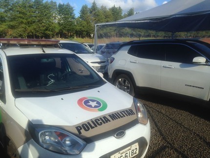 Carro da Polícia Militar no CT da Chapecoense nesta sexta-feira (Foto: Eduardo Florão)