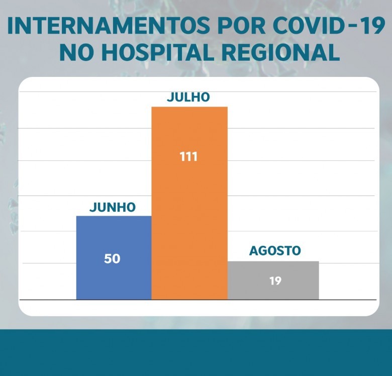 Já em julho, quando ocorreu o pico da pandemia em todo o país, foram registradas 111 internações e 35 óbitos pela Covid-19. A queda expressiva ocorreu em agosto. Até o dia 20, foram registradas 19 internações e dois óbitos. O comparativo entre os meses de julho e agosto demonstram uma redução de 94%.