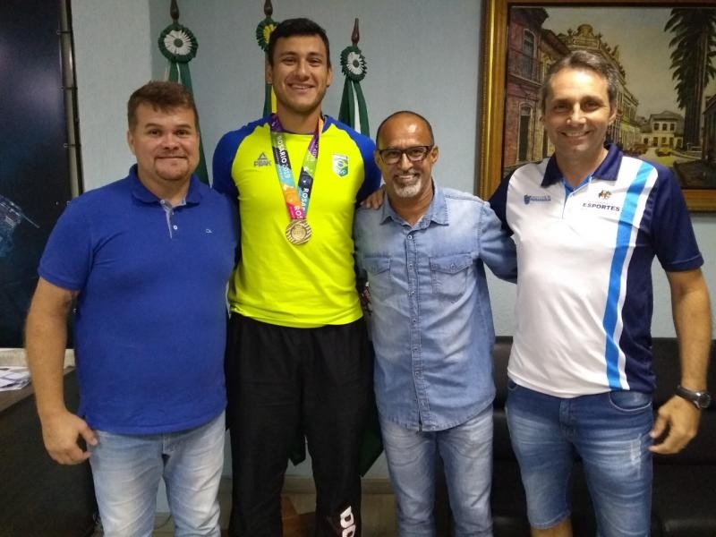 Nesta quarta-feira, 27, o atleta de handebol de areia, Vinícius Forigo, esteve no gabinete do prefeito, Marcelo Roque, trazendo a medalha de ouro que foi conquistada no Sul-Americano da categoria, que aconteceu em Rosário, na Argentina, entre os dias 14 e 20 de março.