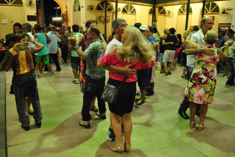 A comerciante Alcione Martins Mendes acompanhou o baile e não teve tempo para dançar uma única música tocada pelo grupo Pés de Ouro. Ela, a filha e uma funcionária estavam se desdobrando para atender aos centenas de clientes que vinham ao seu balcão ou nas mesas de seu box no Mercado do Café atrás de bebidas, pastéis, bolinho de camarão e banana recheada. “Infelizmente não dá para dançar mesmo, mas a gente consegue faturar bem”, respondeu de forma bem humorada a comerciante.