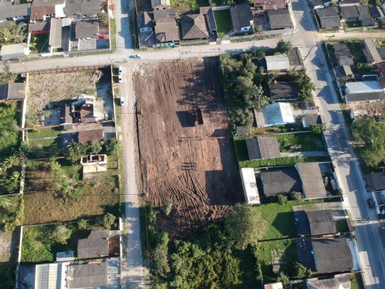 O terreno está localizado no cruzamento entre a rua Arsênio Bento dos Santos e rua Calim Paulo.
