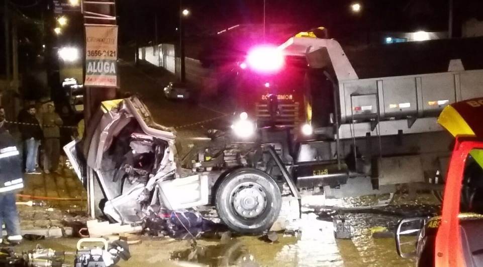 Um motorista, de 30 anos, ficou presos nas ferragens da cabine de um caminhão após ela se desprender e bater de frente com um poste no cruzamento da Rua Pedro Pavin com a Rua Vereador Hermenegildo Tosin, no Centro de Colombo, na região metropolitana de Curitiba, na noite desta segunda-feira (5).