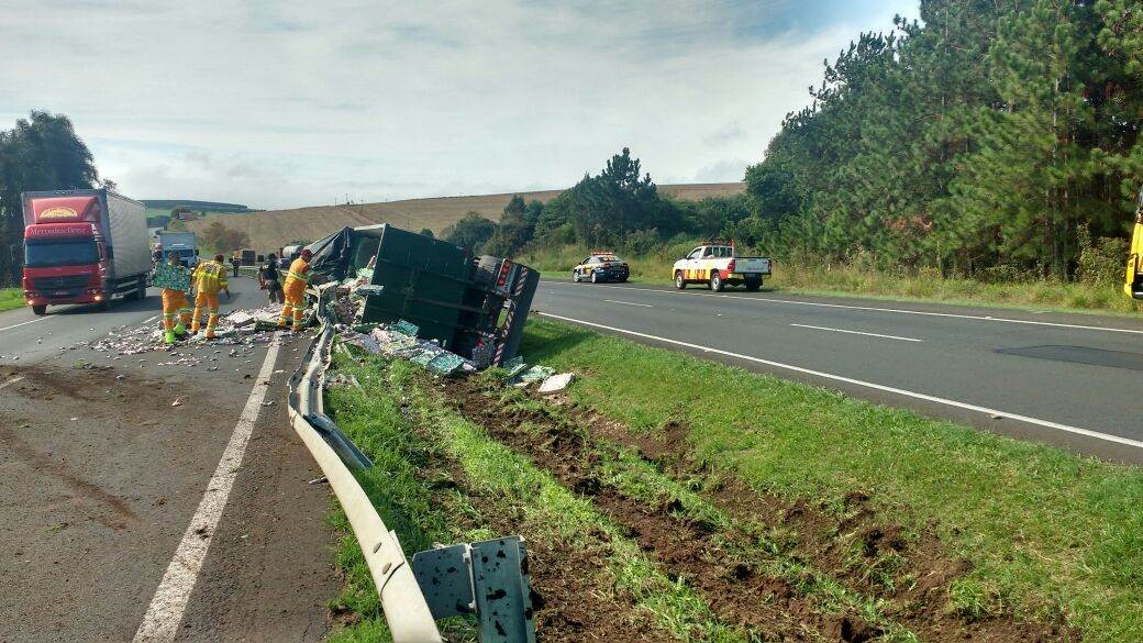 Um homem morreu nesta quarta-feira (31), em um acidente na altura do Km 522 da BR-376, na região de Vila Velha. A vítima dirigia um caminhão carregado com papelão, que tombou na pista.