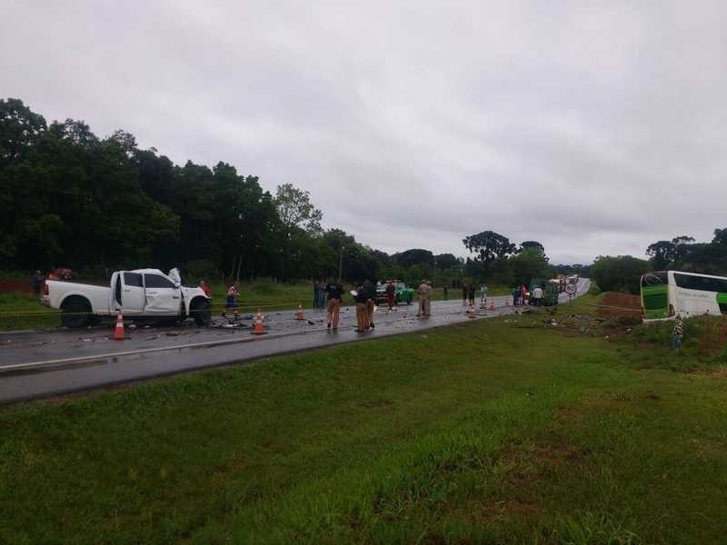A PRF revelou que os dois óbitos foram dos dois condutores, ou seja, o motorista da picape e o motorista do ônibus. Há, ainda, uma vítima em estado grave (uma mulher, passageira da picape) e outras três com ferimentos leves, que estavam no ônibus. Todas elas foram encaminhadas para a Santa Casa de Prudentópolis. Conforme a equipe da PRF, que atendeu a ocorrência, a caminhonete invadiu a faixa contrária.