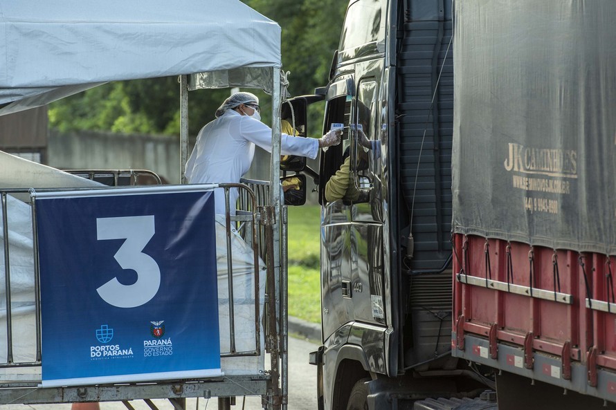 De 1º de maio até as 23h59 desta quinta-feira (28), cerca de 49 mil caminhoneiros passaram pela triagem de saúde no Pátio do Porto de Paranaguá. Somente nos silos públicos, todos os dias, 370 caminhões descarregam em torno de 14 mil toneladas de grão e farelo, em média.