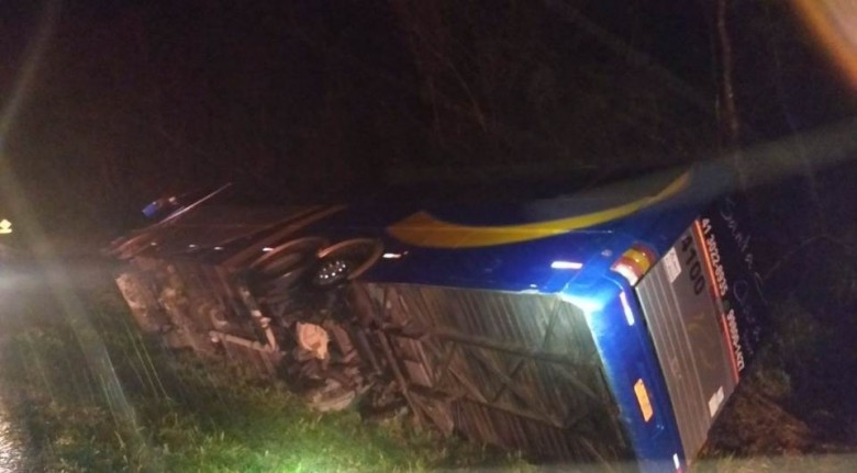 Um ônibus de turismo, que saiu de Foz do Iguaçu e tinha como destino Curitiba, sofreu um acidente na madrugada desta quinta-feira (3) no quilômetro 198 da BR-277, na região de Palmeira. O veículo tombou e dois homens, de 48 e 67 anos, morreram no local do acidente.