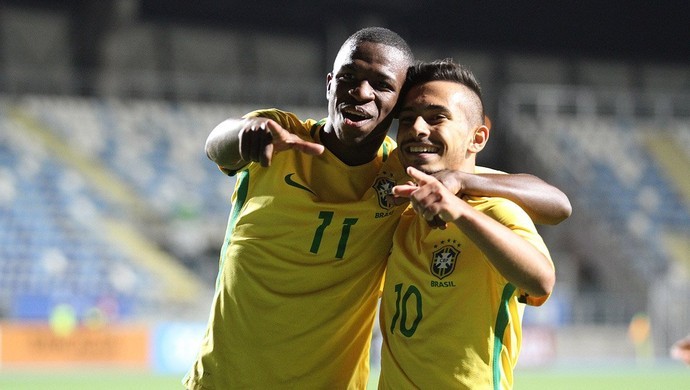 Vinicius Junior, com a 11, festeja gol no Sul-Americano sub-17 (Foto: Divulgação/Sul-Americano Sub-17)