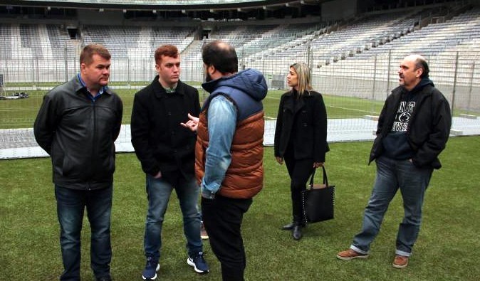 A visita foi também acompanhada pela superintendente de Estrutura e Orçamento da SEMEDI, Ana Paula Falanga, além do secretário de Trabalho e Emprego, Brayan Roque. O engenheiro do estádio, Ali Ahmad Nasser, além do diretor de marketing Nelson Fanaya Filho.