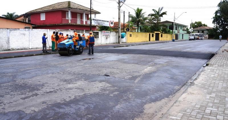 O cronograma segue com a definição da sinalização vertical e horizontal. O acabamento do calçamento já começou. A previsão de término da sinalização e do calçamento é maio.