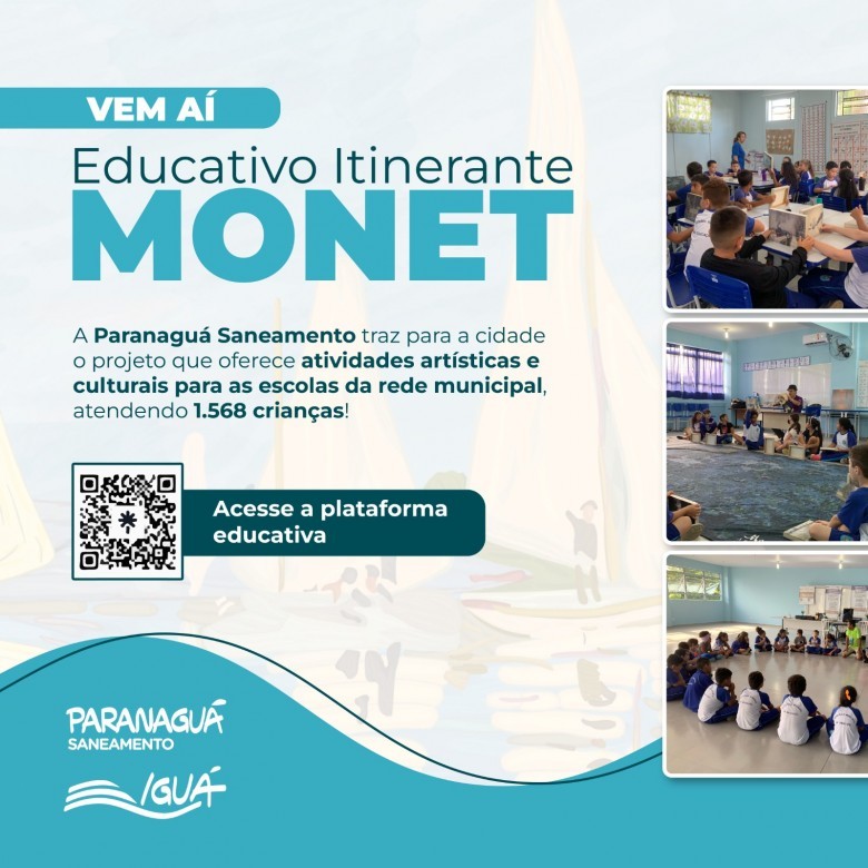 “Nossa participação na sociedade vai além das fronteiras da concessionária. Nosso objetivo é sermos a melhor empresa de saneamento para o Brasil e isso inclui a contribuição para uma sociedade melhor, preocupada com o meio em que está inserida e ambientalmente responsável. O Itinerante Monet faz essa ligação de temas com maestria, de forma lúdica e divertida, levando arte, cultura e reflexões importantes para as escolas municipais de Paranaguá”, afirma Wagner Souza, diretor geral da Paranaguá Saneamento.