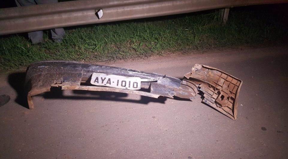 Apesar do motorista ter fugido, com o impacto da batida, o para-choque do veículo ficou caído no local ainda com a placa, o que deve ajudar na identificação do autor do acidente. Segundo testemunhas ele é morador da região.